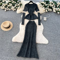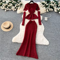 Beaded Sweater & Fishtail Skirt Knitted 2Pcs