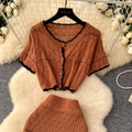 Crochet Cardigan & Half-body Skirt 2Pcs