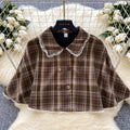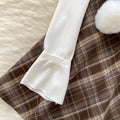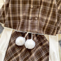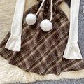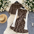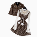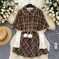 Faux Two-pieces Dress&Cape Plaid 2Pcs