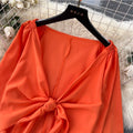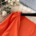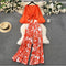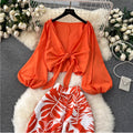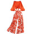 Flared-sleeve Top & Printed Trousers 2Pcs