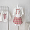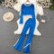 Hollowed Crochet V-neck Top&Skirt 2Pcs
