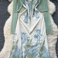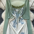 Mesh Cardigan & Floral Slip Dress 2Pcs