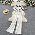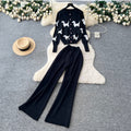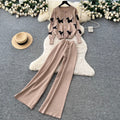 Print Cardigan & Wide-leg Trousers 2Pcs