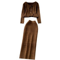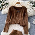 Ruffled Cardigan & Slim Skirt 2Pcs