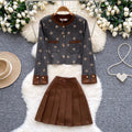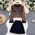 Sequined Cardigan & Pleated Skirt 2Pcs