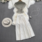 Slant-neckline Knitwear & Shorts Striped 2Pcs