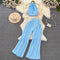 Striped Sweater&Wide-leg Trousers Knitted 2Pcs