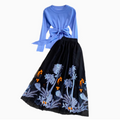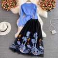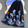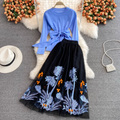 Sweater & Embroidered Mesh Skirt 2Pcs
