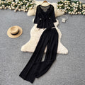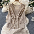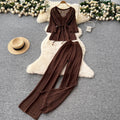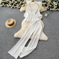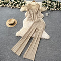 U-neck Knitwear & Trousers Hollowed 2Pcs