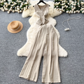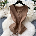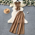 V-neck Vest & Wide-leg Trousers 2Pcs
