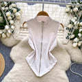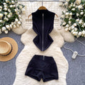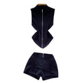 Zipped Vest & Hip-wrapping Shorts 2Pcs