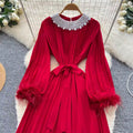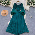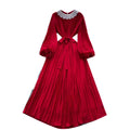 Courtly Rhinestone Beaded Pleated Dress