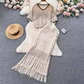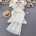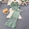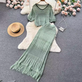 Hollowed Knitwear & Fishtail Skirt 2Pcs