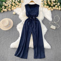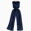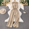 V-neck Sleeveless Drawstring Jumpsuits