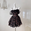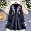 Embroidered Lace Black Puffy Dress