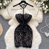 Black Lace Patchwork Halter Dress