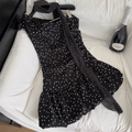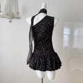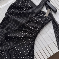 White Polka Dot Pleated Black Dress