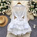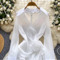 V-neck 3D Ruffled Shirt Dress