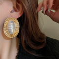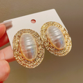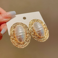 Vintage Pearl Stripe Alloy Oval Earrings