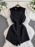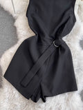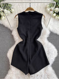 Simple Design Black Sleeveless Rompers
