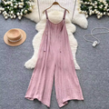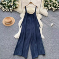 Simple Design Denim Blue Wide-leg Jumpsuits