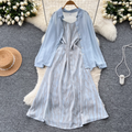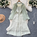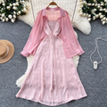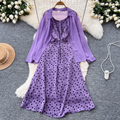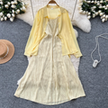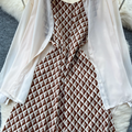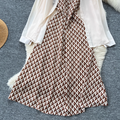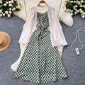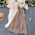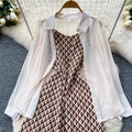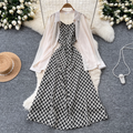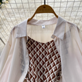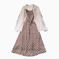 Chiffon Shirt & Plaid Slip Dress 2Pcs