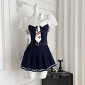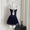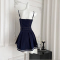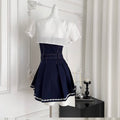 Denim Patchwork Dress with White Cape 2Pcs