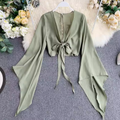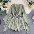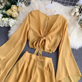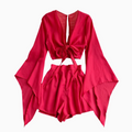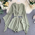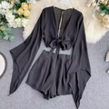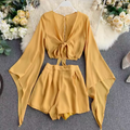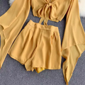 Flared-sleeve Shirt & Shorts Chiffon 2Pcs