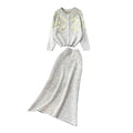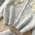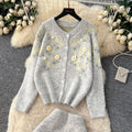 Flower Embroidered Cardigan & Skirt 2Pcs