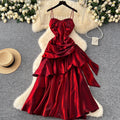 High-end Metal Red Slip Party Dress