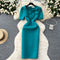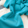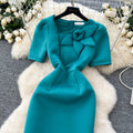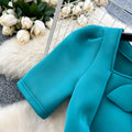 Slant Neckline Puffy Sleeve Dress
