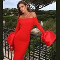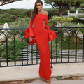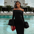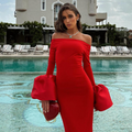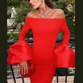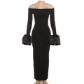 Off-shoulder Solid Color Split Dress