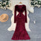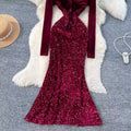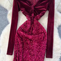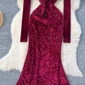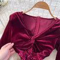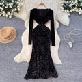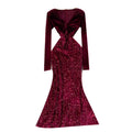 V-neck Velvet Sequined Fishtail Dress