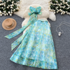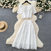 Crochet Lace Shirt & Skirt Print 2Pcs