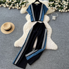 Slant-neckline Knitwear & Shorts Striped 2Pcs