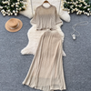 Sleeveless Cardigan & Bottoming Shirt 2Pcs