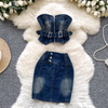 Beaded T-shirt & Hip-wrapping Skirt 2Pcs