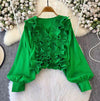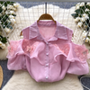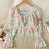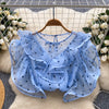Sweetie Puffy Sleeve Embroidery Floral Shirt