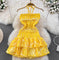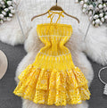 Backless Hollowed Ruffled Halter Dress