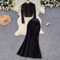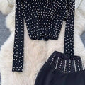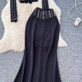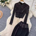 Beaded T-shirt & Hip-wrapping Skirt 2Pcs