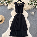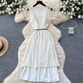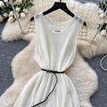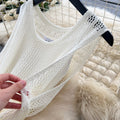 Crochet Knit Dress & Slip Dress Elegant 2Pcs