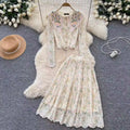 Crochet Lace Shirt & Skirt Print 2Pcs