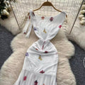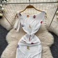 Elegant Printed Fishtail White Dress