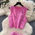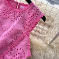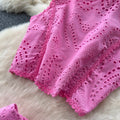 Hollowed Embroidery Shirt & Skirt 2Pcs