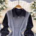 Hollowed Knitwear & Bottoming Shirt 2Pcs