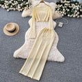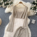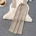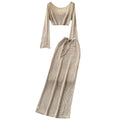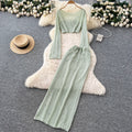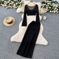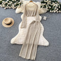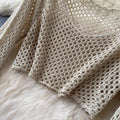 Hollowed Top & Skirt Solid Color 2Pcs