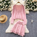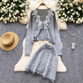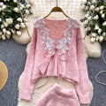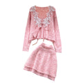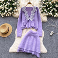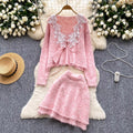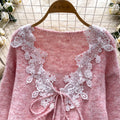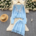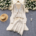 Lace Patchwork Cardigan & Skirt 2Pcs