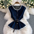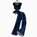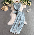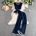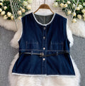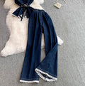 Lace Patchwork Denim Vest & Jeans 2Pcs