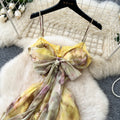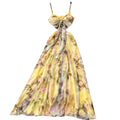 Lace-up Backless Printed Slip Dress