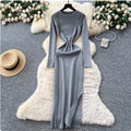Niche Solid Color Split Knit Dress